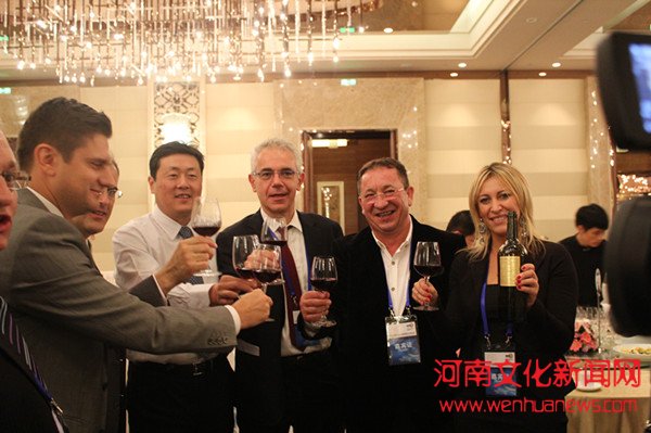 冷谷红董事长耿红伟与外宾领导共同饮用红酒