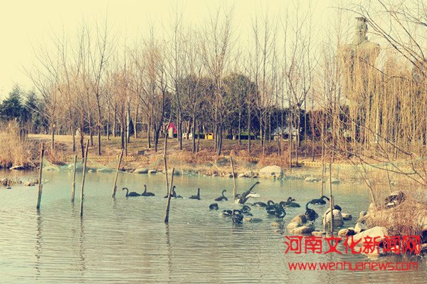 河南文化新闻网讯 郑州绿博园内拥有着自然的生态环境,非常适合各种动物居住。近期,绿博园内迎来了一群新朋友——黑天鹅。