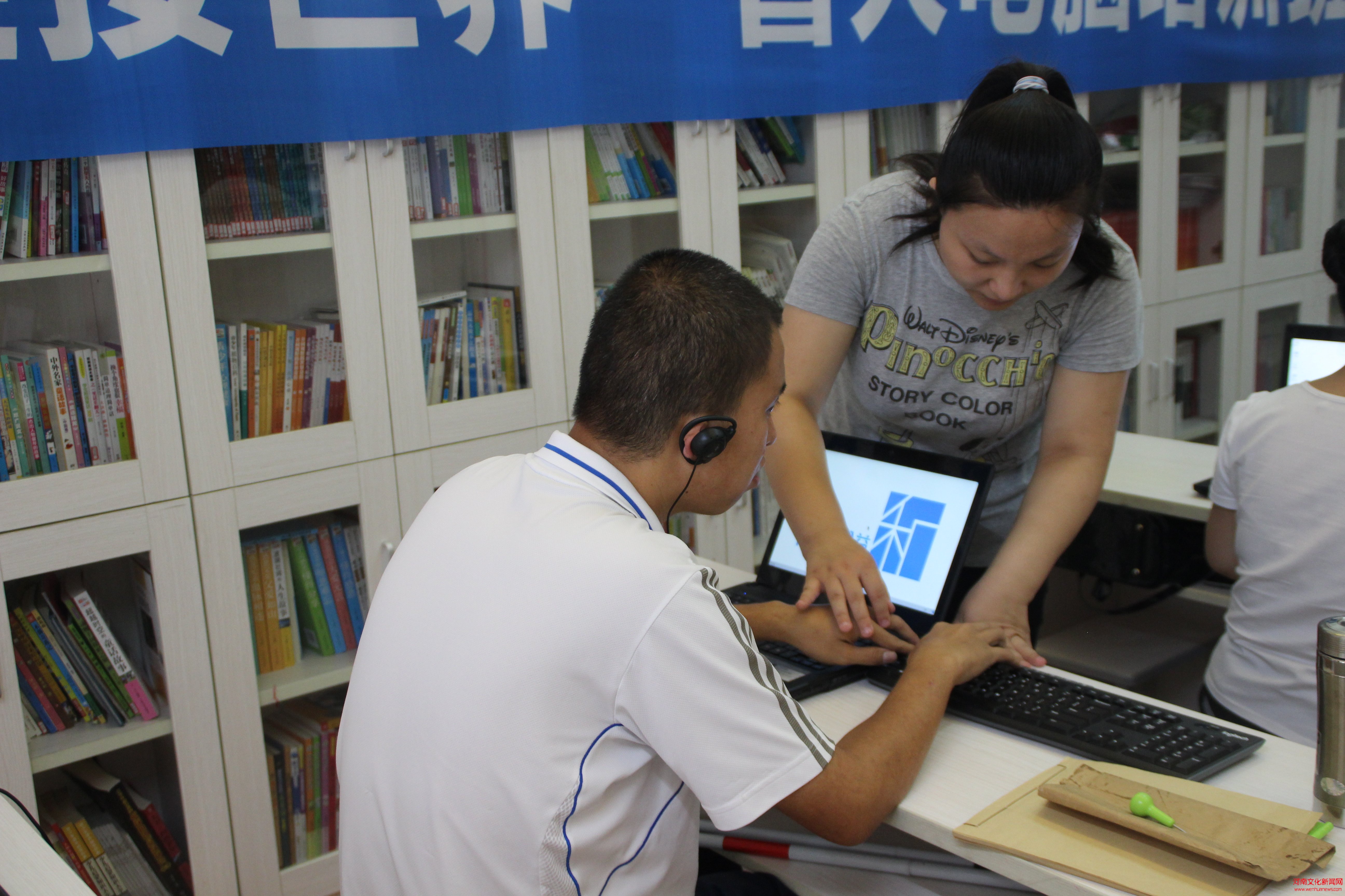 志愿者一大早来到活动现场,与工作人员一同布置场地,安置电脑,检查电源、键盘、耳机等设备。9点左右,盲人朋友在志愿者的引领下陆陆续续来到活动现场,活动中,除了讲师授课外,志愿者还在旁边进行辅导,帮助盲人朋友寻找、认识键盘等。
