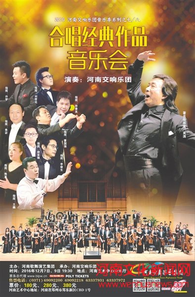 据吴涛介绍,这两场音乐会特邀郑州田园室内合唱团、河南“我和你”女子合唱团、郑州月光合唱团、平顶山和谐之声合唱团、纬五路第一小学“金莺”童声合唱团、郑州铁路文化宫沙龙合唱团、龙子湖小学童声合唱团、河南四季胖哥和声合唱团、郑州市文化馆工人合唱团、五月花女子合唱团等十支省内一流业余合唱团参与,他们将与河南省歌剧团共同为大家献上精彩演出。