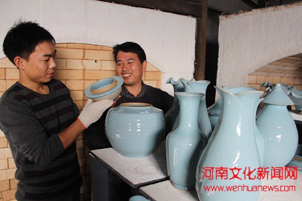 河南文化新闻网讯 12月4日,河南汝州市金冠汝瓷研究所的员工们正在出窑刚烧好的汝瓷新产品。近年来,该所结合现代科学技术,推陈出新,研发出汝瓷五大系列100多种产品,畅销全国20多个省市,还吸引美国、德国、韩国、新加坡等国外客商前来洽谈购货。其中百余种汝瓷系列环保功夫茶具,填补了汝瓷有史以来无生活瓷的空白。(刘迎旭)