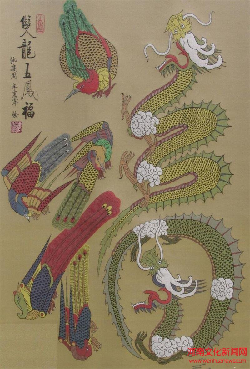 池家  真丝织锦《双龙五凤图》