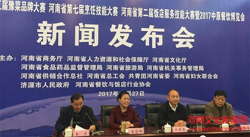 河南文化新闻网讯 10月27日上午,2017中原餐饮博览会暨河南省第五届豫菜品牌大赛、第七届烹饪技能大赛、第二届饭店服务技能大赛组委会在河南省商务厅召开新闻发布会,公布以上赛事将于11月1日至3日在济源市隆重举行。