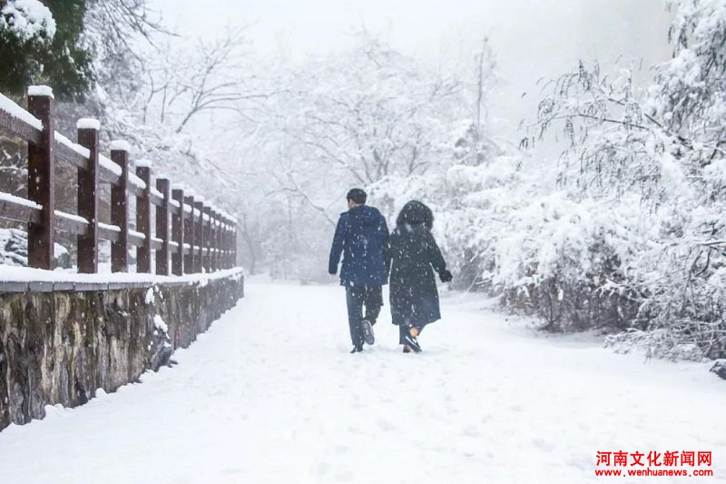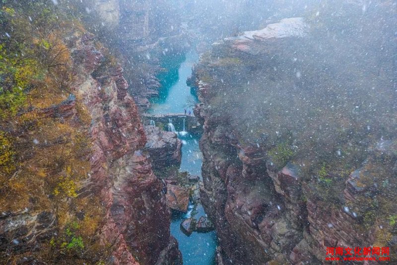 雪花似鹅毛一般,纷纷扬扬,晶莹如玉、洁白无瑕,此时此刻的云台山成为了诗句中的美景。
