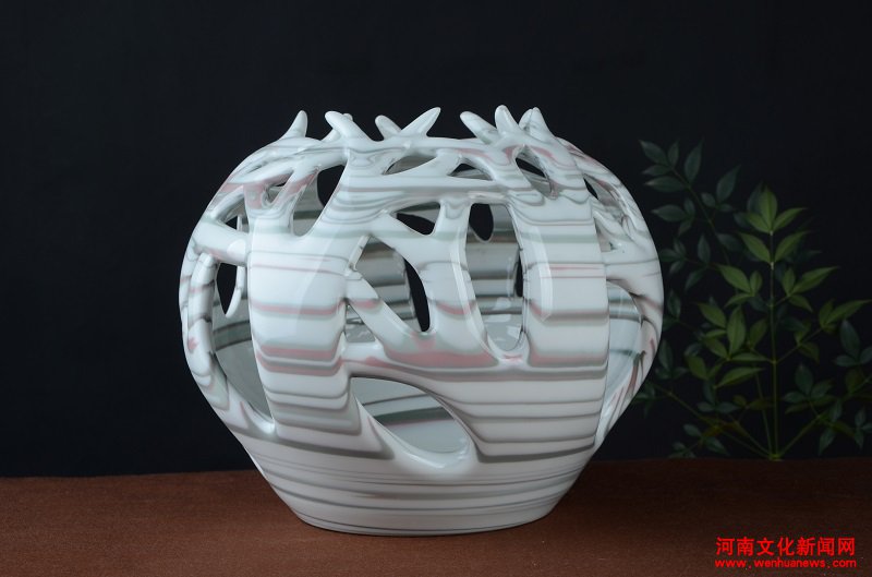柴战柱和他的团队在绞胎瓷研发与生产中引入了彩绘、浮雕、透雕、书法多种艺术手段,使绞胎瓷获得了更大的艺术表现力。在烧制方法上,他们大胆运用新工艺。运用新工艺,不仅成品率高,产品成色好,能实现鲜亮如玉的效果,基本上解决了传统绞胎瓷在高温下易崩裂和难成大器的问题,而且这些创新举措也更符合现代人对艺术的审美和需求。
