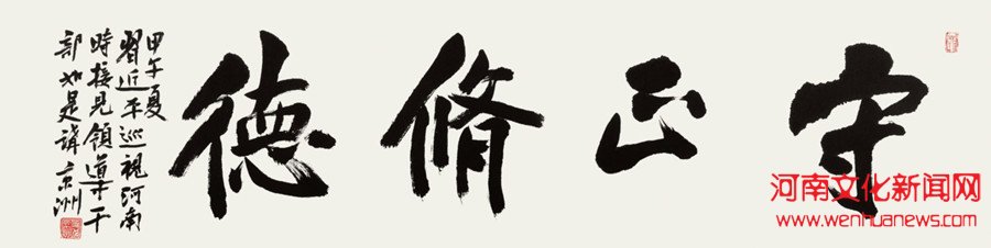 三是真实的平民情怀。从古到今,大抵上被称为“圣人”的先哲大贤,几乎都有触手可及的平民品格,从老子之道到孔孟之礼,从白石老人的素面朝天到吴冠中的布衣人生,及至谢瑞阶的故乡吟唱和陶博吾的平民情怀都可罗举一二,夏京州经常说,写字是个雕虫小技,不能拿出来张扬摆谱,更不能忘了自己是“从群众中来”的原本和忘了“我是谁”和应该“为谁服务”的根本。夏京州先生不仅这样说而且在这方面多有逸事,那就是他从来不把自己当成“腕”和“名流”的低调和谦和,以及他不忘根植于百姓、服务于群众的“书家己任”,他融入群众、与群众打成一片、视群众如亲人,被坊间称为“真正的人民艺术家”。类似这样的故事比比皆是,对上门求书的群众他不仅有求必应,还会留下来聊天吃饭,对画廊的生意人,他也是慷慨相送、不计成本。有的人拿着他赠予的作品在市场上兜售卖了个好价格,他听说后总是不动声色的再奉上一份,他这样解释:“人家是不得已才变卖的······”。最近,他又将最近几年创作的100多幅精品力作全部裸捐给了河南省爱心基金会,用于社会慈善事业的发展,再次体现了他心中大爱无疆的行动和爱民为民的慈善家担当。
