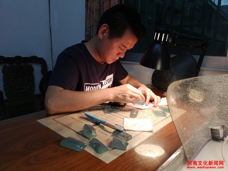 看玉、画玉、雕玉,感觉来的时候,张志坚每天工作16个小时以上,经常一干一夜,直到黎明才去休息两个小时,赶在8点半工作室开门前准时到。