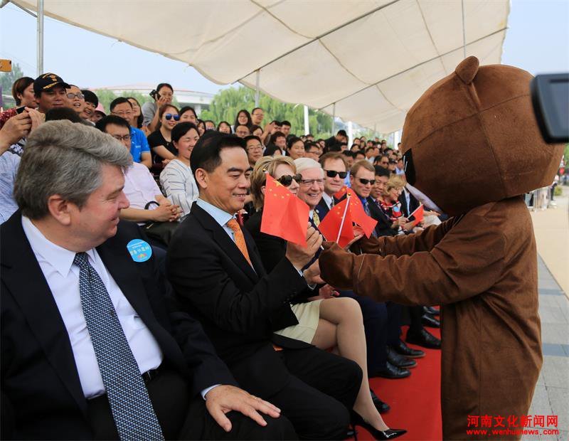 庆典仪式上,富特海斯州立大学和西亚斯国际学院互赠礼物;加拿大卡普顿大学和西亚斯国际学院进行了合作签约。
