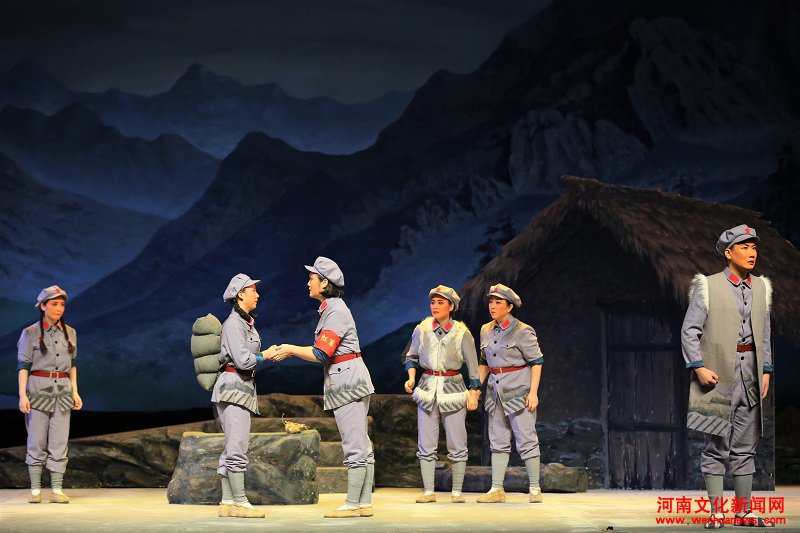 9日晚,河南省京剧艺术中心今年重点打造的现代京剧《望断飞雁》首次亮相。该剧根据姚远先生话剧《马蹄声碎》改编,由原上海戏剧学院戏导系主任宋捷担任编剧、导演,讲述了长征路上,红军在国民党反动派围追堵截中,艰难的踏上长征路,92团团长陈子昆为了不拖累妻子,庄严的献出了生命,师政委不得不向妻子冯桂珍隐瞒出发时间,五个性格迥异的女战士为了坚定的信仰追赶部队,历经艰苦跋涉,仅剩下的四个女兵即将追上河对岸的主力部队时,唯一的路——桥,被炸毁了。生死危难面前,雋芬用自己的身体换取战友们北上之路……凄婉的山歌回响在河的两岸,这些女兵用凤凰涅槃般的精神,讲述了不一样的红军辉煌。