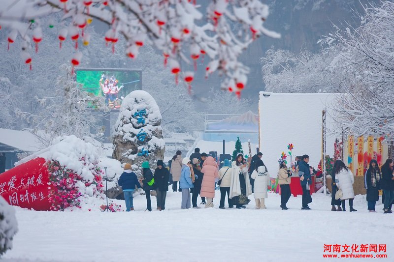纷纷扬扬的雪花飘落而至,乘索道登临海拔1300米的茱萸峰顶,极目远眺,山峦与云雾虚实相映、若隐若现。