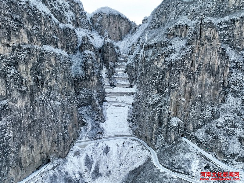 被白雪染过的山峰苍茫磅礴,呈现出一幅唯美壮丽的云台风光。