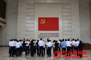 参观结束,在河南廉政文化教育中心一楼大厅,全体党员干部面向党旗重温入党誓词,铮铮誓言,铿锵有力,激励全体党员干部强化党员意识,增强党性观念,永葆廉洁自律的政治初心,用实际行动恪守对党的承诺,增强拒腐防变能力,筑牢廉洁自律防线。