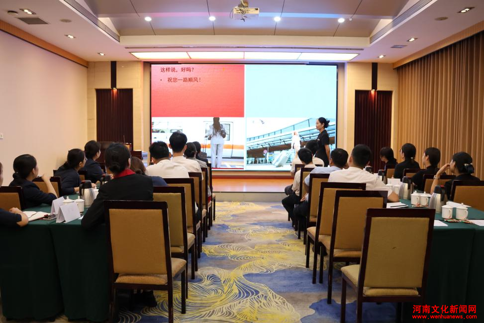河南文化新闻网讯   为进一步提升宾馆员工的沟通服务能力,为宾客提供更优质的服务。8月28日,郑州融通紫荆山宾馆组织开展说话的艺术培训。