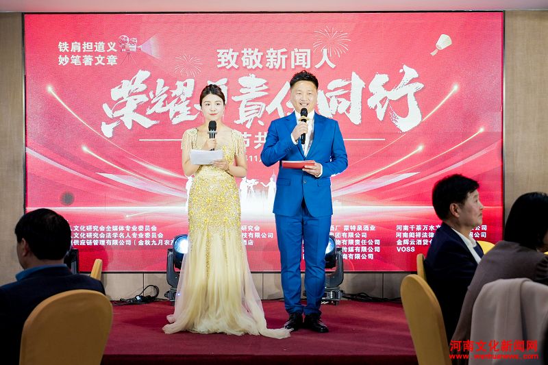 河南文化新闻网讯  铁肩担道义,妙手著文章。11月8日下午,由河南省名人文化研究会、河南省名人文化研究会全媒体专业委员会、河南省名人文化研究会法学名人专业委员会、河南旭力生物科技有限公司、河南梧桐树假日酒店、河南稻香源供应链管理有限公司(金秋九月农产品)主办,内蒙古宝丰源酒厂 蒙特泉酒业、河南千茶万水文化传媒有限公司、河南帅闳科技集团有限公司、河南闳祥法律咨询服务有限公司、郑州德民堂健康咨询有限公司、VOSS、焦作明仁天然药物有限责任公司、河南莱纳西茨文化传媒有限公司协办的“致敬新闻人:荣耀与责任同行——记者节共庆盛典”在郑州梧桐树假日酒店举行。
