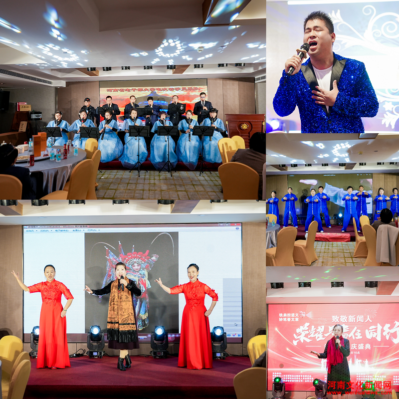 盛典现场,艺术家们奉献了精彩纷呈的文艺节目。金嗓子林琳为大家演唱了《祖国我的最爱》歌曲,河南老干部大学省直机关和行业退休的老干部带来了精彩的电吹管表演《歌唱祖国》、《我和我的祖国》、《空山静》,最具时尚魅力青年歌手崔海宾带来了歌曲《老乡》《取经归来》,豫剧崔派表演艺术家、国家一级演员、央视三套《幸福账单》特邀嘉宾崔小红,携两位徒弟共同演唱《穆桂英挂帅》和《十祝福》选段,来自陈正雷太极郑州绿城太极拳馆带来了陈式太极拳综合套表演为记者节助兴。现场掌声不断,将本次活动推向高潮。
