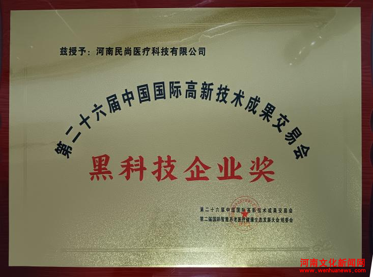 民尚集团捧回第26届中国国际高新技术成果交易会“黑科技企业奖”