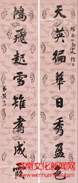 楹联作品由于字体相对较大,往往最能体现书家的艺术造诣,因而受到广大收藏爱好者的欢迎。此次河南厚铭精选的楹联佳作,在拍卖会上引起了众藏家一次次竞拍,现场气氛十分热烈。其中清代状元之书尤其受到现场藏家的青睐。
