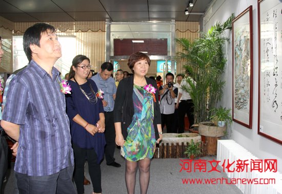 郑州市文联主席、著名书法家钟海涛(左一)等观展