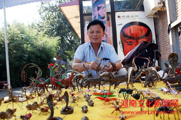 河南文化新闻网 近年来,到北京798艺术区来参观、购买艺术品的人是越来越多。在今年的国庆长假期间,这里的一个手工艺术品展示摊位前,摆满了昆虫鸟兽,各个神气生动,唯妙唯肖,吸引了不少游人驻足观赏。