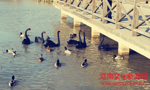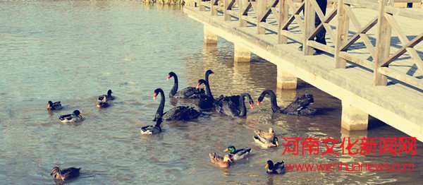 河南文化新闻网讯 郑州绿博园内拥有着自然的生态环境,非常适合各种动物居住。近期,绿博园内迎来了一群新朋友——黑天鹅。