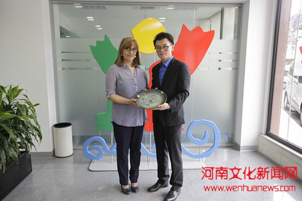中央电视台将钧瓷赠送葡萄牙国家旅游局亚洲事务部总裁桑托斯
