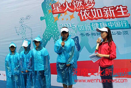 2015年“如新健康中国行”郑州站活动在嵩山举办,300名爱心人士雨中传递健康的爱。