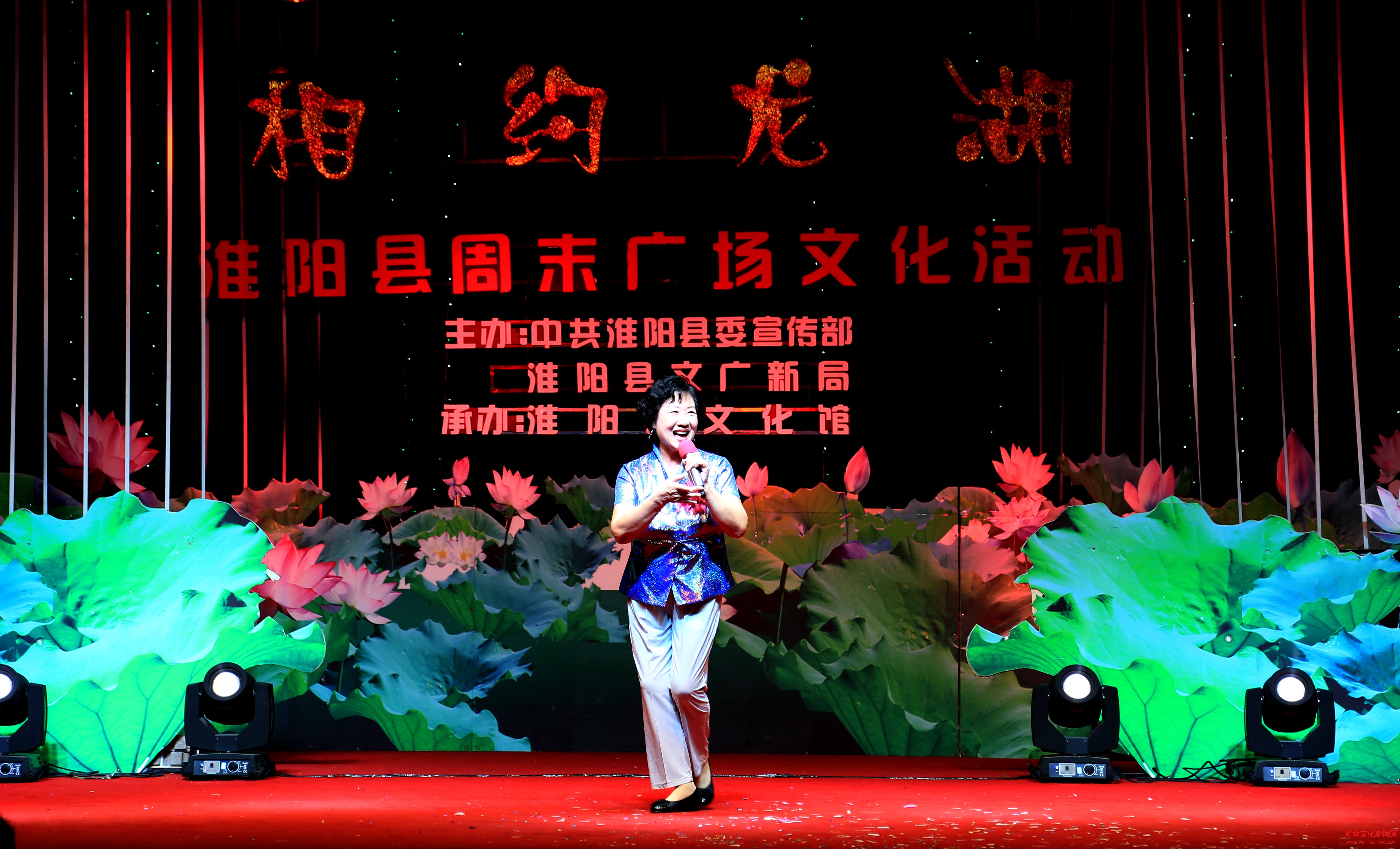河南文化新闻讯 7月29日晚上,36摄氏度的高温阻挡不了3000多群众对广场文化的热情。由淮阳县委宣传部、郑州人民广播电台、淮阳县文广新局主办,郑州广电传媒集团有限公司、淮阳县广播电视台、淮阳县文化馆承办的“相约龙湖--淮阳周末广场文化活动”特别节目在淮阳龙湖岸边羲皇文化广场推出。