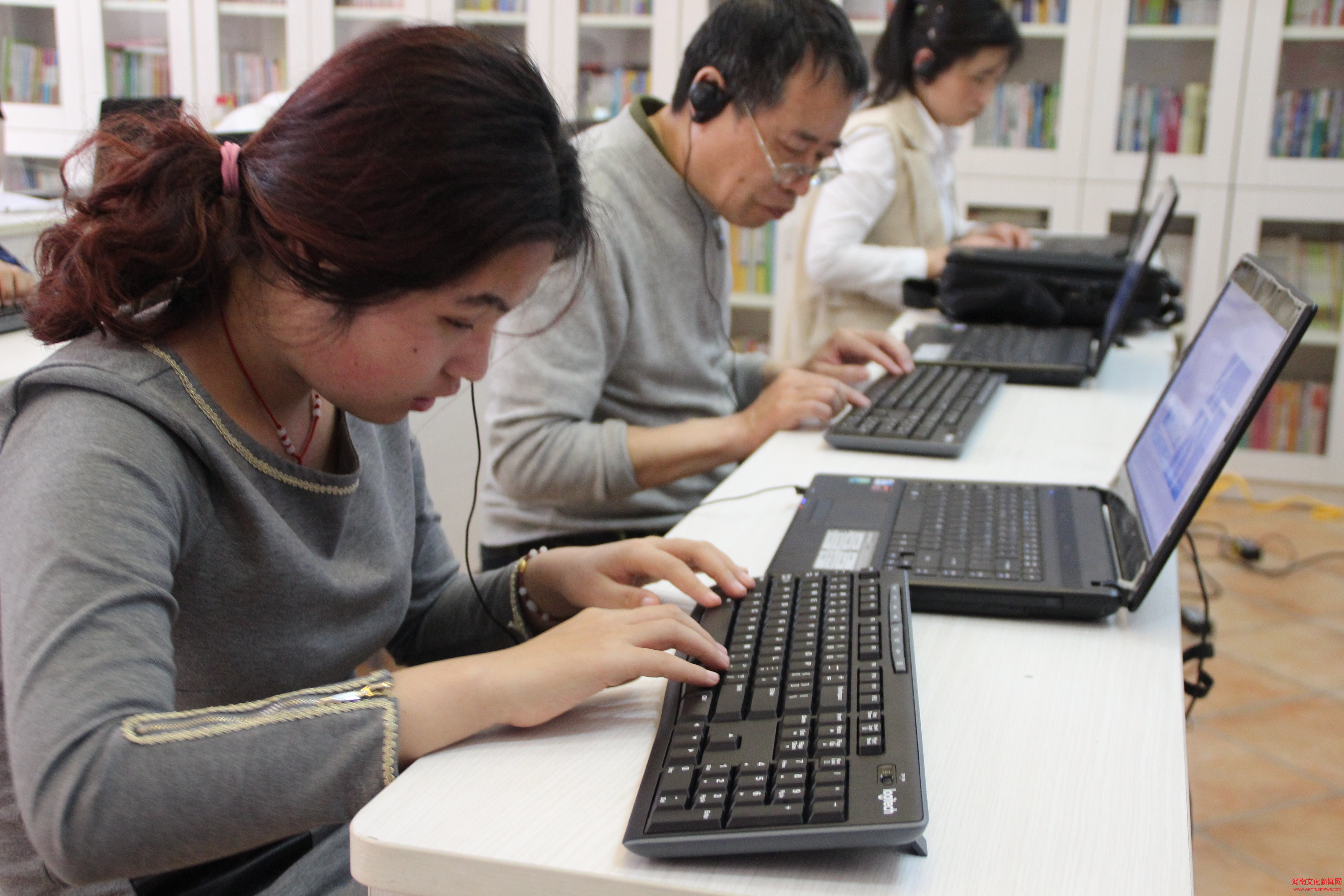 志愿者一大早来到活动现场,与工作人员一同布置场地,安置电脑,检查电源、键盘、耳机等设备。9点左右,盲人朋友在志愿者的引领下陆陆续续来到活动现场,活动中,除了讲师授课外,志愿者还在旁边进行辅导,帮助盲人朋友寻找、认识键盘等。