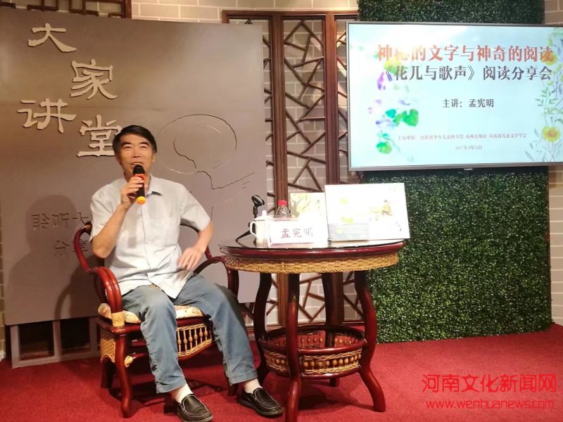 9月24日下午,河南省少儿图书馆联合海燕出版社和河南省儿童文学学会主办的“大家讲堂”——孟宪明《花儿与歌声》阅读分享会在省少儿图书馆大家讲堂举办。河南省少儿图书馆馆长崔喜梅、副馆长王海辉、海燕出版社副总编辑康秀花与来自纬五路第二小学、南阳路第一小学、郑州幼儿师范高等专科学校的学生、老师以及小说读者共70余人一起聆听了本次讲座。