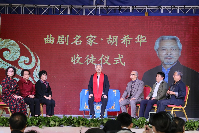 “尊师重道,薪火相传”模块把本次活动推向高潮。在曲剧名家王秀玲,豫剧名家柳兰芳、贾廷聚、汤玉英,著名作曲家杨华一,光大欧安乐龄医养中心总裁贾克义等众多嘉宾和艺术家见证下,著名曲剧表演艺术家、曲剧“胡派”创始人胡希华先生再添高枝,喜收五位新徒。