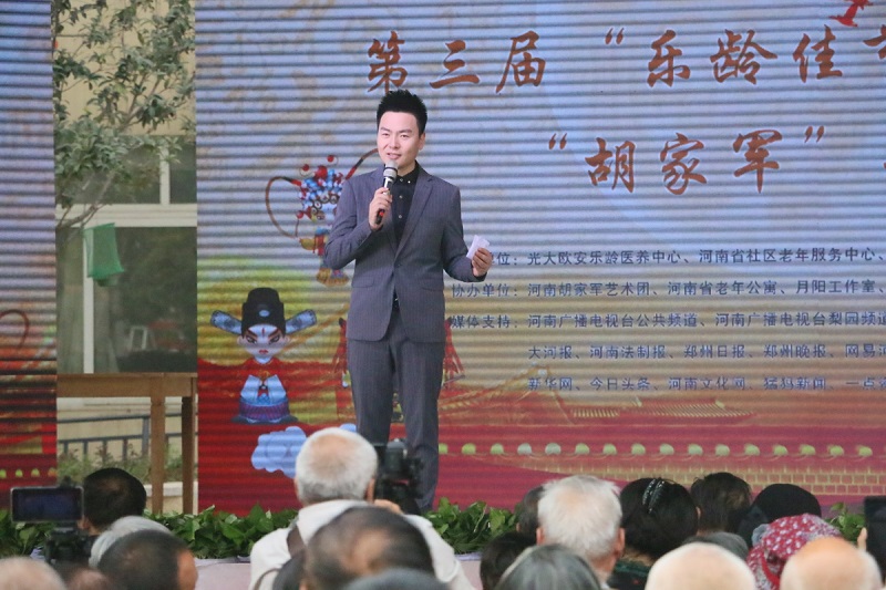 “乐龄佳节 金色重阳”主题活动已成功举办两届,每逢佳节光大欧安乐龄都会邀请众多艺术家和园区老人们同娱同乐。此次“乐龄佳节金色重阳胡家军专场演出”由河南广播电视台戏曲广播著名节目主持人月阳主持,演出共分“开场”、“致敬胡派,经典再现”、“尊师重道,薪火相传”、“梨园芬芳,名家助阵”五个模块,各个模块都让现场观众好叫连连。