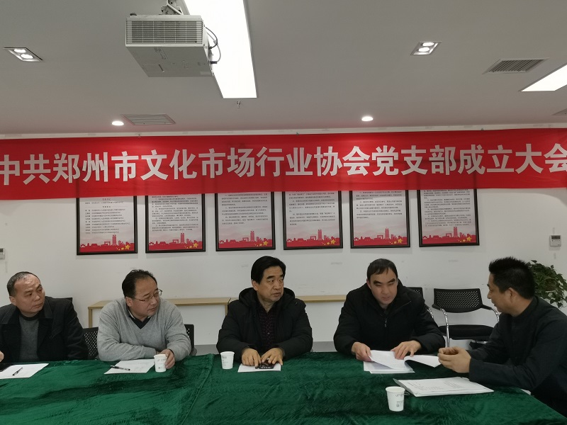 河南文化新闻网讯  12月26日上午,中共郑州市文化市场行业协会支部委员会成立大会在协会会议室召开。出席会议的有中共郑州市社会组织委员会毛海超同志、郑州市文化市场综合执法支队李水明书记,郑州市文化市场行业协会娄保民会长携协会副会长及全体党员同志。会议有协会副会长葛天主持,主题为成立和选举中共郑州市文化市场行业协会支部委员会,经过大会投票选举包士军同志为党支部书记。