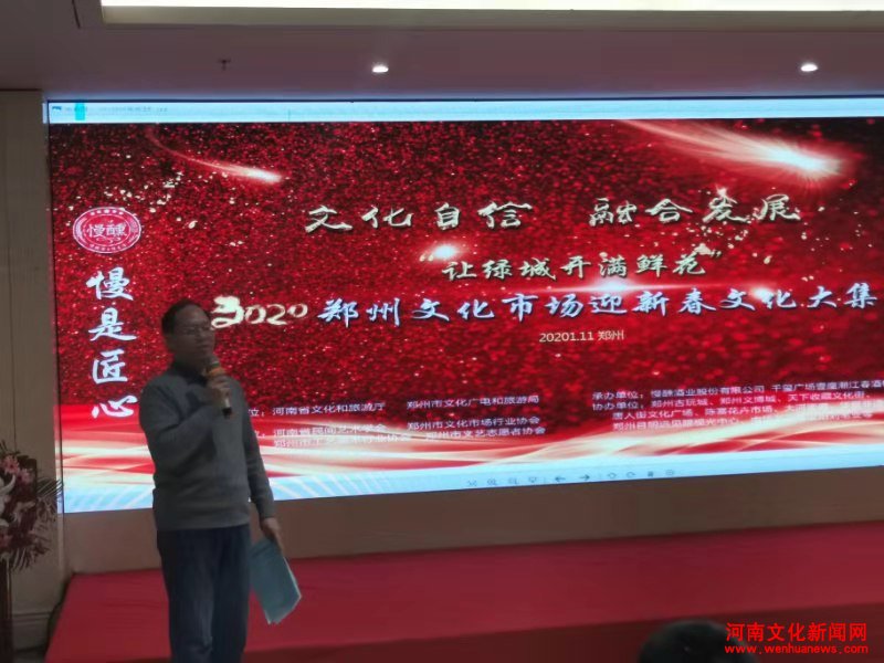 据活动主办方郑州市文化市场行业协会娄保民会长介绍,为了促进郑州国家中心城市建设和河南自贸区郑州片区文化行业市场创新发展,进一步促进河南、郑州文化、工艺美术、艺术品等市场繁荣和文化、文艺志愿者活动发展,提高全社会对中国传统文化的重视和现代文化艺术的认知,弘扬中华国粹,展现文化艺术魅力,打造一个有文化、有秩序、有品位、有气质的新郑州,郑州市文化市场行业协会发起联合郑州省会文化协会组织,开展以“文化自信融合发展”“让绿城开满鲜花”为主题的郑州.2020年迎新春文化大集今天正式启动,随后还有一系列文化活动与大家见面。
