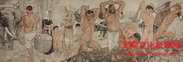 徐悲鸿1940年作《愚公移山》,国画,143.5x424厘米