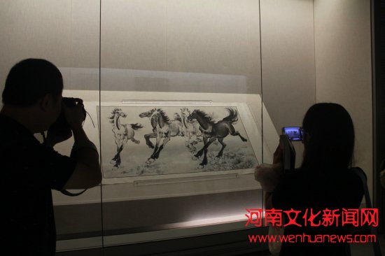 徐悲鸿先生的名作《群奔》吸引了众多媒体的镜头