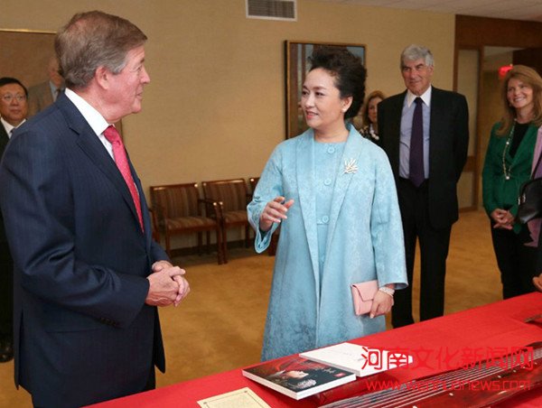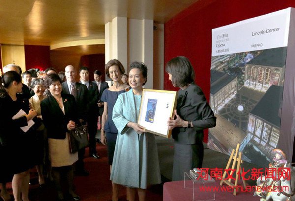 当地时间28日上午,中国国家主席习近平夫人彭丽媛参观纽约林肯艺术中心,与新老朋友共话中美文化交流成果。2005年,彭丽媛曾偕中国歌剧《木兰诗篇》在此成功演出。十年后,老朋友重逢,彭丽媛说:“这么多年过去了,你们依然年轻,正是对艺术的奉献使你们青春永驻。”