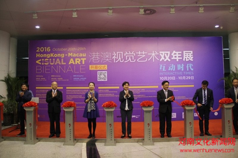 河南文化新闻网讯 10月20日,为进一步加强内地与港澳交流与合作,促进三地文化艺术繁荣发展,由文化部、香港特别行政区政府民政事务局、澳门特别行政区政府社会文化司主办,香港特别行政区政府康乐及文化事务署、澳门特别行政区政府文化局、甘肃省文化厅、河南省文化厅协办,中国对外文化集团、中国对外艺术展览有限公司承办,香港特别行政区政府艺术推广办事处、香港城市大学互动媒体与电算应用中心、澳门设计师协会联合统筹的“2016港澳视觉艺术双年展”在河南省美术馆开幕。