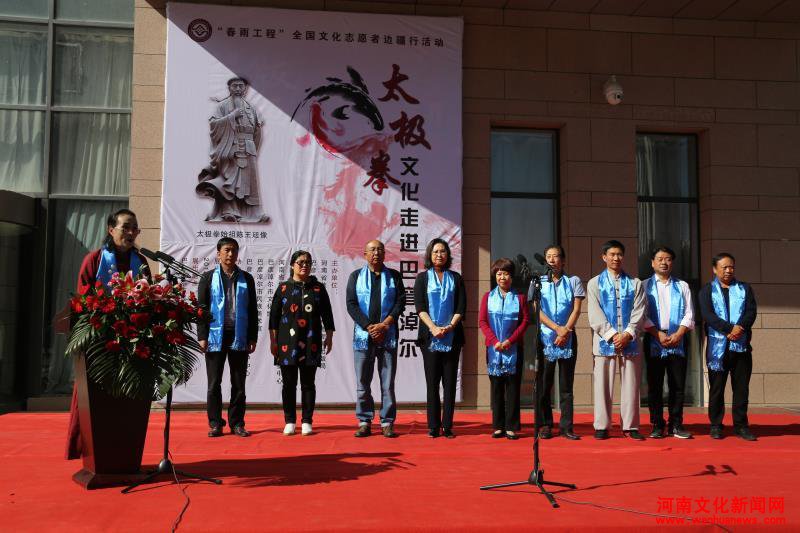 河南文化新闻网讯 为实现文化艺术资源和人才资源共享,内地文化和边疆文化的交流交融,9月12日至15日,2018“春雨工程”全国文化志愿者边疆行——太极拳文化走进内蒙古巴彦淖尔系列活动以“大展台”“大舞台”“大讲堂”的形式,为巴彦淖尔人民带来博大精深的中原武术文化——太极拳,为传播太极拳文化,提升太极拳爱好者、习练者的演练水平,促进太极拳文化在祖国边疆的推广和传承起到了重要的桥梁和纽带作用,受益人数达1800人次。