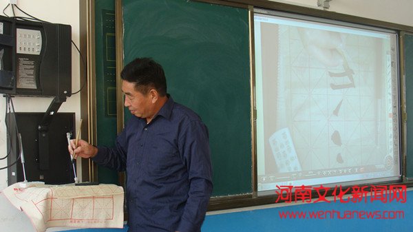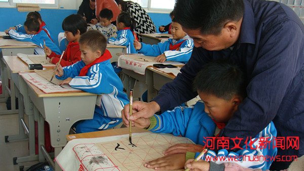 吴延波喜静,然而有感于电脑与手机逐步代替书写,中华书法艺术逐渐被搁置,他接受了开封新区横堤铺小学杨维娜校长的邀请,为小学生们在校义务教授书法课。他说:“书法从古积淀至今,根植于传统文化,理应得到充分的传承发扬。”在横堤铺小学,他整日与学生在一起,上课,他握着一个个小手一笔一划地练习书法;下课,学生们来到他的办公室看书、练字。他办公室的门常日不关,欢迎每一个愿意造访办公室的学生。他去上课,门便虚掩着;他在,门便大开着。在横堤铺小学,最常见的场景便是他坐在桌前书写书法作品,小学生们或在他的书柜前翻阅他收藏的书籍、或坐在一旁安静练字。小孩子喜动,书被翻乱了,纸张被弄脏了,他便在离开时仔细整理好,等待孩子们明天的到访。一间窗明几亮的教室,一张桌子,几个书柜,就是他办公室全部的家当。一杯清茶,几张宣纸,磨一砚墨,他便能度过安静舒适的一天。他的办公室,无论窗外怎样寒风萧瑟,室内却总是温暖怡人。