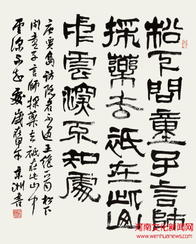 研究书画30余年,主张“尚古出新,意追秦汉,法归晋唐,弘扬时代”,是书法中“新古典主义”和“中原书风的实践者”。喜秦汉晋唐书风,所见碑版、断碣、简牍、残纸无不研习。善隶书、篆书、章草。