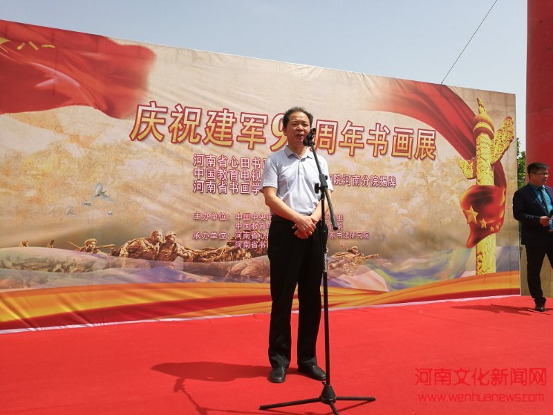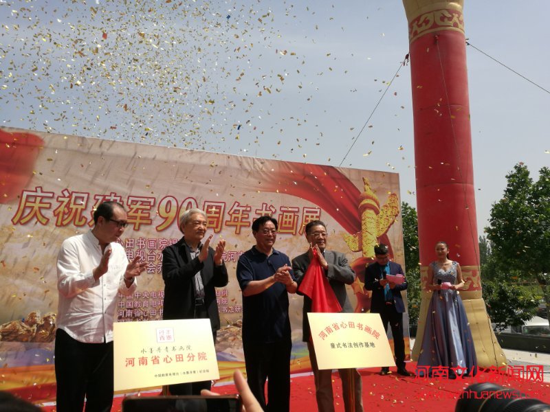 河南文化新闻网讯 5月7日,为迎接中国人民解放军建军90周年,大力弘扬我党我军光荣传统,热情讴歌人民军队忠诚于党、矢志不渝的革命信念,艺术再现人民军队波澜壮阔的光辉历史。河南省心田书画院在郑州举行揭牌仪式。开幕式上,来自全国各地的数百名书画名家前来观赏祝贺,十六届中共中央委员、全国政委常委、原解放军装备部副政委李栋恒中为开幕式剪彩。