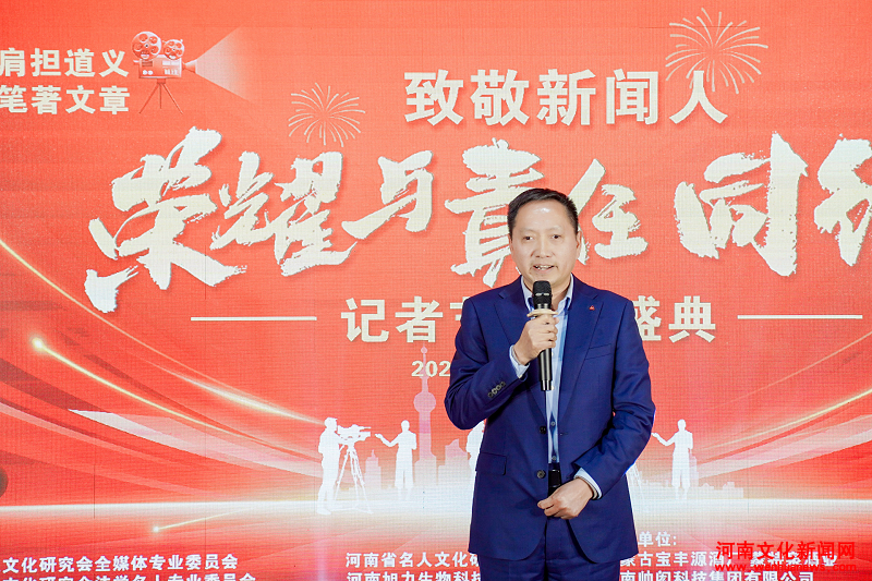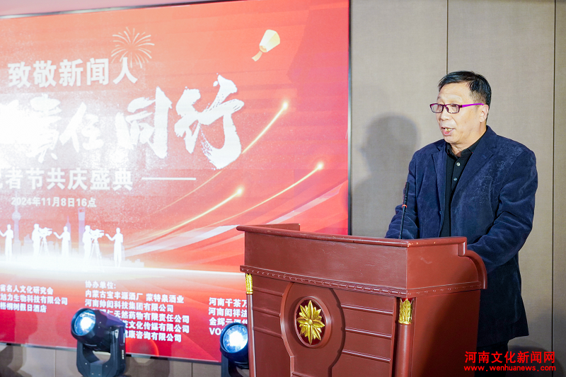 河南文化新闻网讯  铁肩担道义,妙手著文章。11月8日下午,由河南省名人文化研究会、河南省名人文化研究会全媒体专业委员会、河南省名人文化研究会法学名人专业委员会、河南旭力生物科技有限公司、河南梧桐树假日酒店、河南稻香源供应链管理有限公司(金秋九月农产品)主办,内蒙古宝丰源酒厂 蒙特泉酒业、河南千茶万水文化传媒有限公司、河南帅闳科技集团有限公司、河南闳祥法律咨询服务有限公司、郑州德民堂健康咨询有限公司、VOSS、焦作明仁天然药物有限责任公司、河南莱纳西茨文化传媒有限公司协办的“致敬新闻人:荣耀与责任同行——记者节共庆盛典”在郑州梧桐树假日酒店举行。